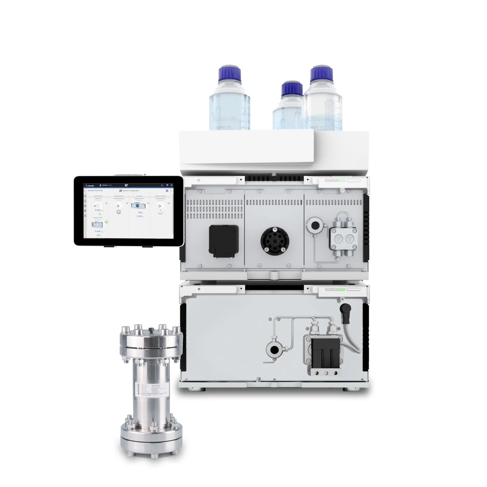 The preparative HPLC systems are designed for max. flow rates of up to 1000 ml/min and high performance. Stainless steel or titanium pump heads and gradient options enable high flexibility.