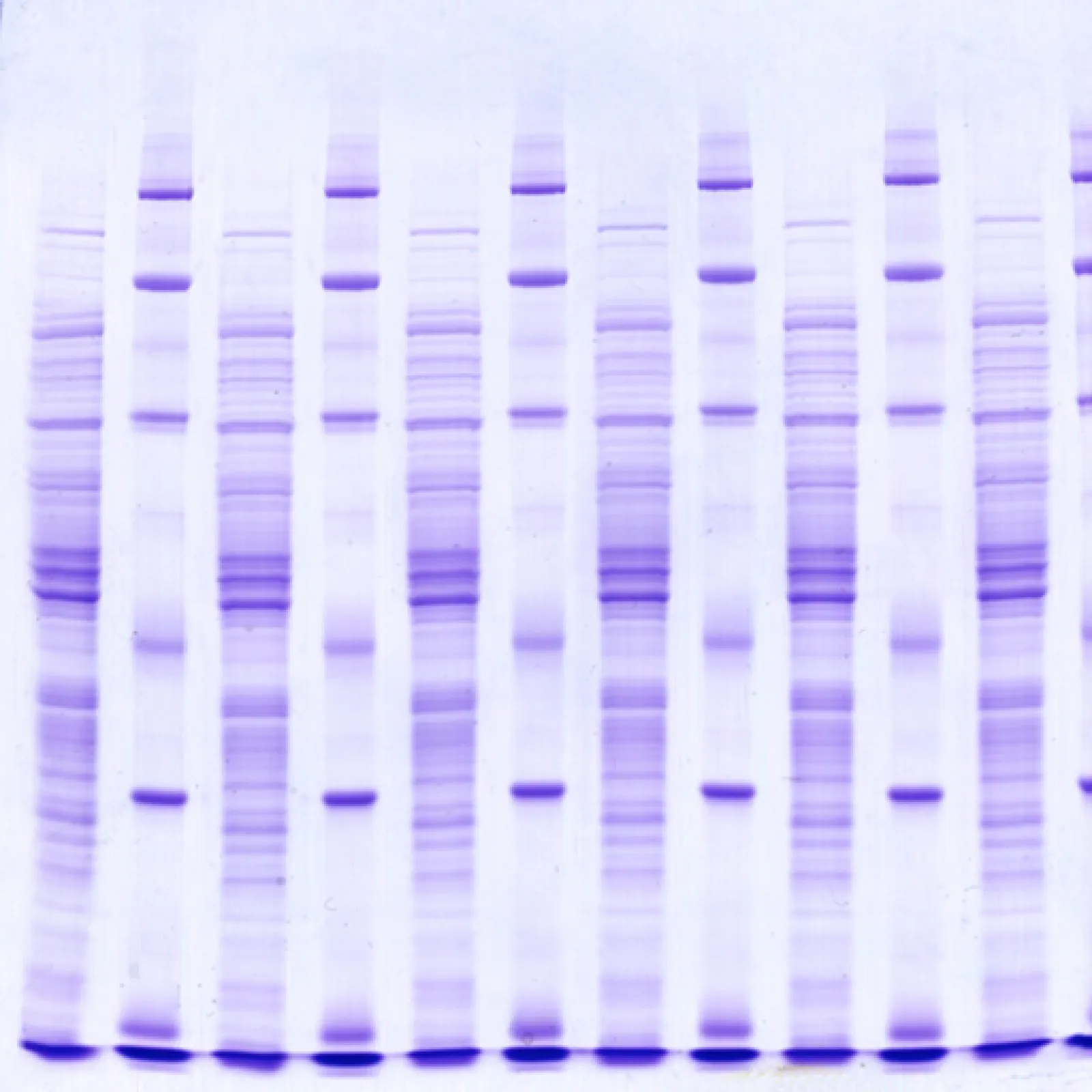 The SERVAGel™ TG PRiME™ minigels are precast gels in cassettes (10 x 10cm) for the vertical electrophoresis. The gels are modified Laemmli gels - the standard gel system used in every lab performing protein gel electrophoresis. To overcome the short shelf life of Laemmli gels (8 - 12 weeks) SERVAGel™ TG PRiME™ gels are modified resulting in a stability of up to 2 years. The separation pattern is similar to lab-cast gels, but with improved performance and guaranteed quality.